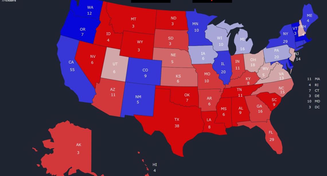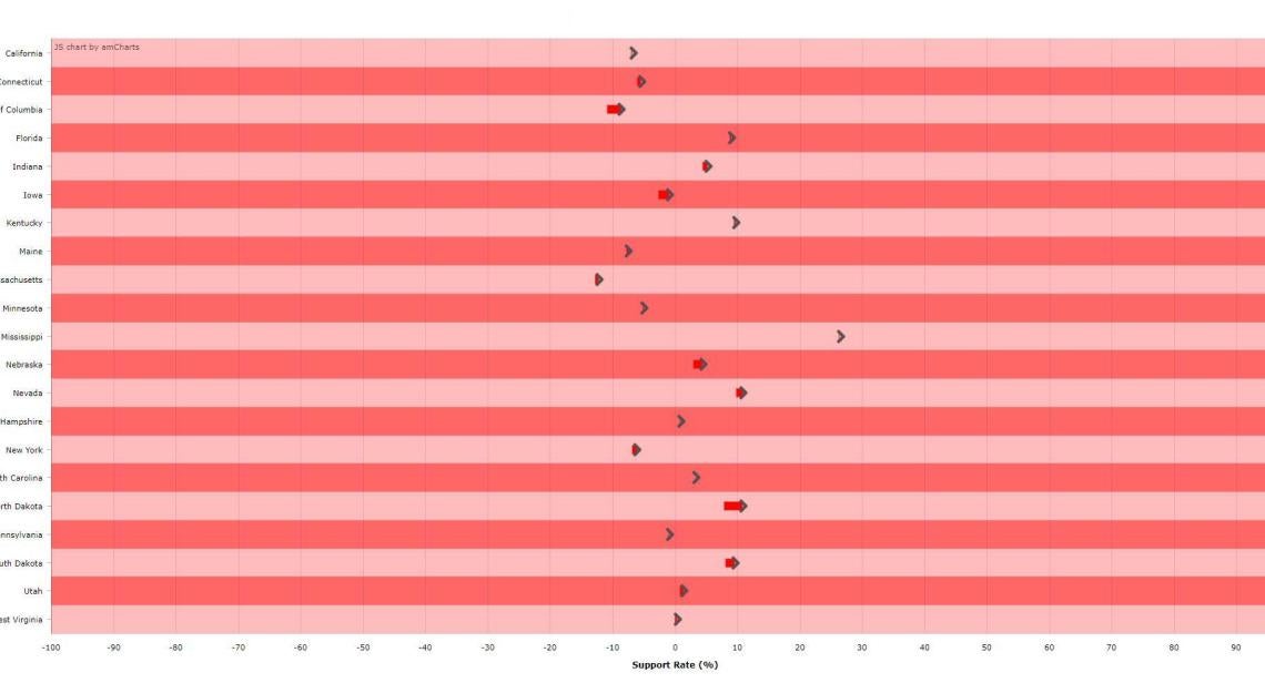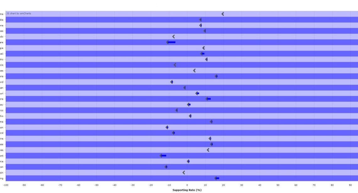 UT CID researchers monitor social media activity surrounding the upcoming election, to track the changes in support for the two presidential candidates in each respective state. The length of each arrow shows the amount of change observed in the past week. The direction of arrows imply the right and left of the political spectrum. States that are changing towards right/left are grouped together and shown as red/blue respectively.